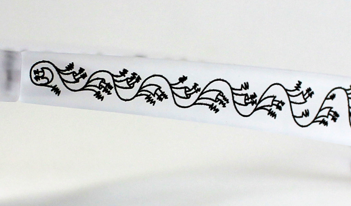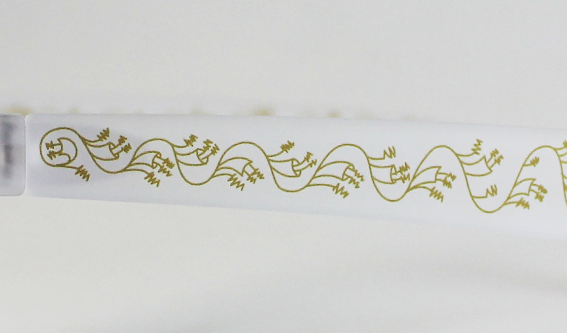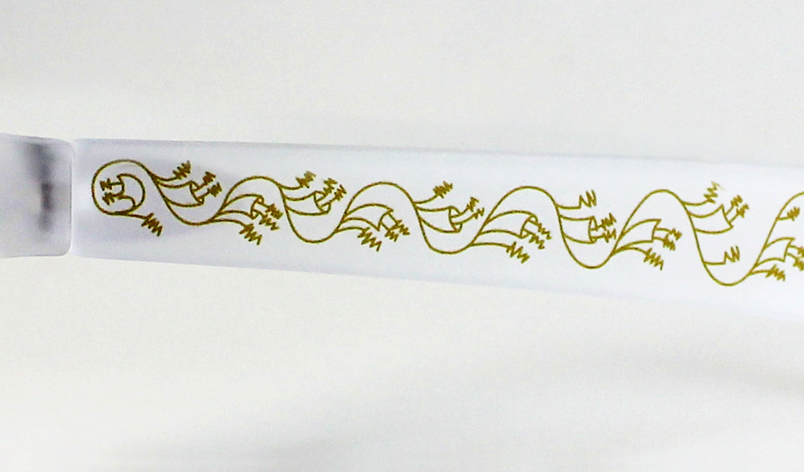 - Gafas con montura transparente mate y dibujo en color oro. Lente marrón polarizada