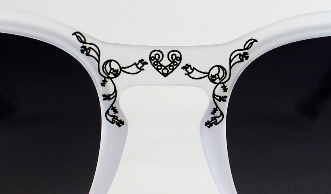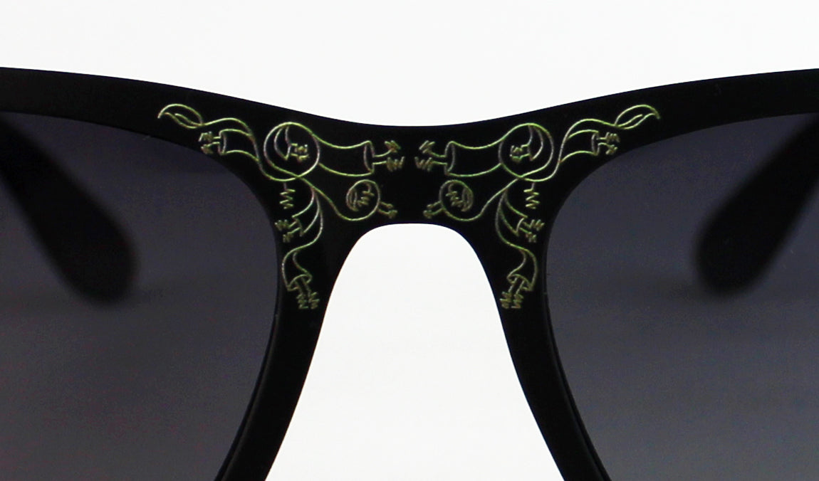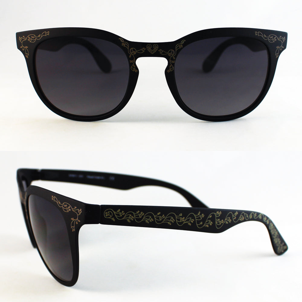 Gafas de sol falleras con adornos en montura basados en el trabajo de la orfebrería valenciana. Un toque especial en tonos dorados o en negro que le aportan estilo a este complemento que te acompaña todo el año. Montura flexible de gran calidad.