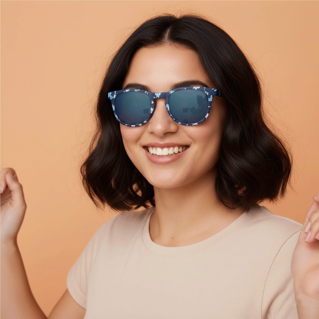 Gafas de sol falleras con el estampado de un conocido tejido de la indumentaria valenciana: la seda 'Pardalets'. Los iconos de esta tela salen de la trama para llegar hasta tus gafas de Sol en diferentes versiones y colores. Montura flexible de gran calidad.